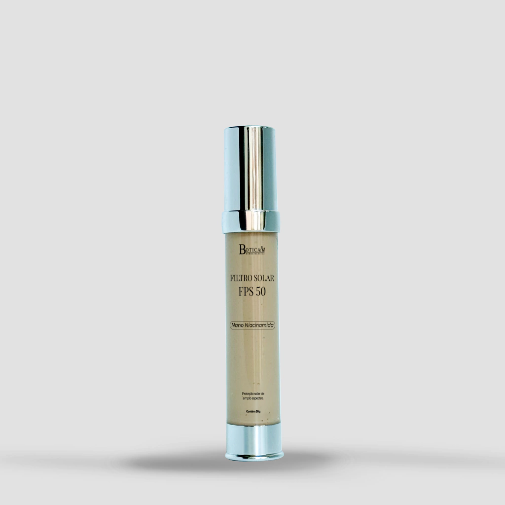O Filtro Solar FPS 50 da Botica combina proteção solar de amplo espectro com a ação clareadora e reguladora da Nano Niacinamida, que age diretamente na melhora da textura da pele, controle da oleosidade e uniformização do tom. Formulado com filtros modernos e fotoestáveis, como Tinosorb® S, Tinosorb® M, Uvinul® A Plus e Uvinul® T-150, garante segurança, resistência à água e eficácia contra raios UVA, UVB e luz visível.